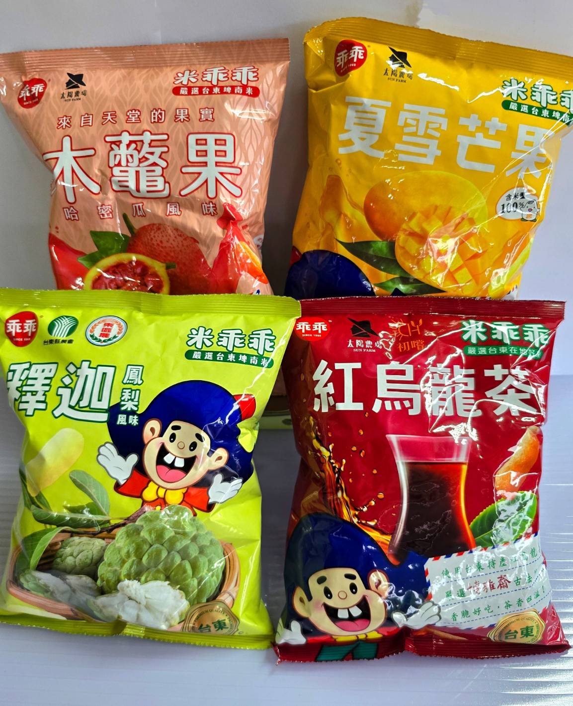 本組合包包含四款12包台東特色口味的米乖乖,